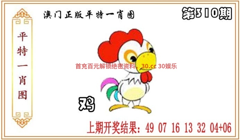310期:家野+两肖【家禽+猴蛇】开:虎16错
